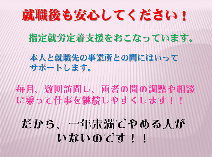 一般就労に向けて様々な面からサポートするサービスです。